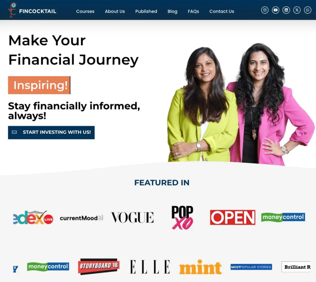 FinCocktail, co-founded by Sayali Rai and Niyati Thaker, is the go-to destination for all things finance. Driven by a mission to empower India’s youth with financial literacy, it offers tailored solutions that simplify complex money concepts. Backed by a team of seasoned professionals, FinCocktail has guided thousands toward financial freedom.